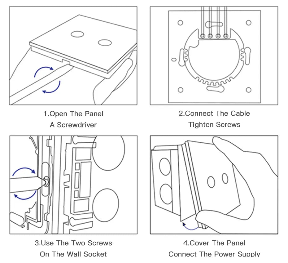- The blue backlight will illuminate when the wiring is successful, allowing you to clearly see our touch switch in the dark.